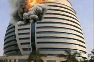 Des images en ligne de l’incendie montraient des nuages de fumée noire s’élevant de la tour aux panneaux de verre incendiée, l’un des plus hauts bâtiments de la capitale soudanaise.